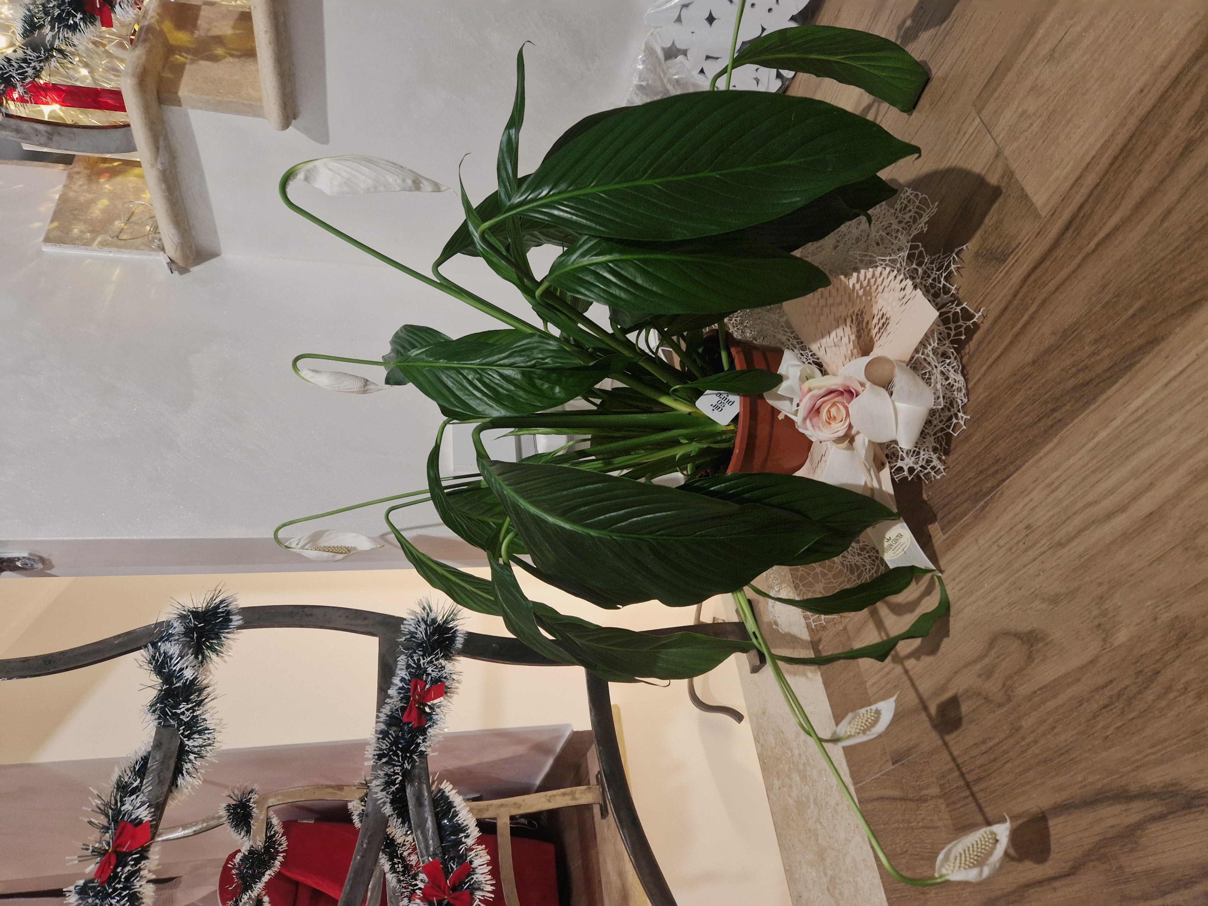 La tua pianta mostra segni classici di eccesso d'acqua: foglie flosce e cadenti, terriccio fradicio e umidità eccessiva attorno al vaso, che spesso porta a marciume radicale. Questo accade perché lo spatifillo ama il suolo umido ma non i ristagni, che soffocano le radici.